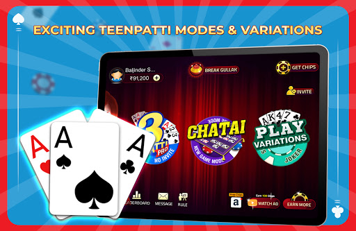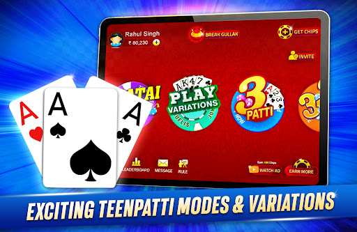 Tham gia cùng hàng triệu người chơi chơi Teen Patti (Rummy Ấn Độ), Chatai, 6 Patti, 3 Patti, AK47, Tourneys thời gian thực
